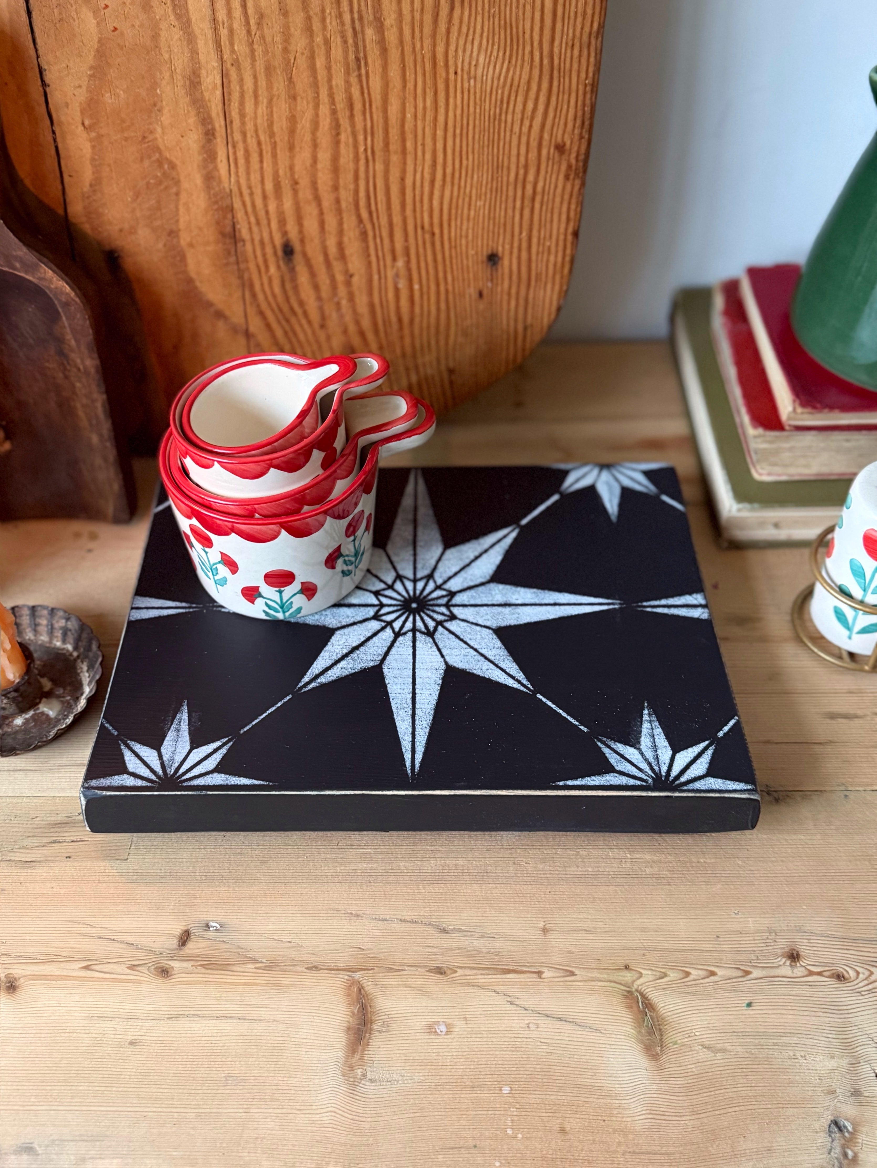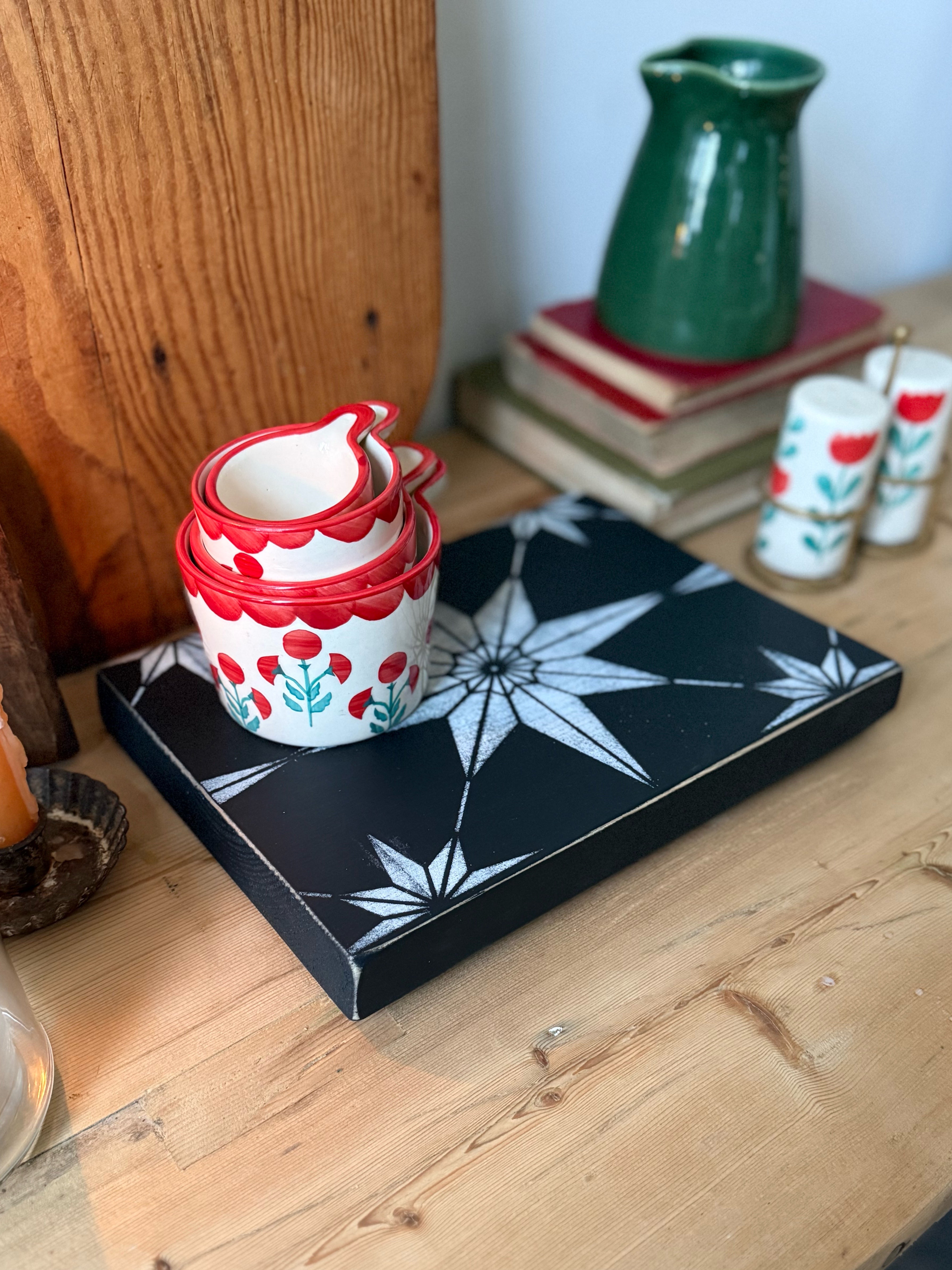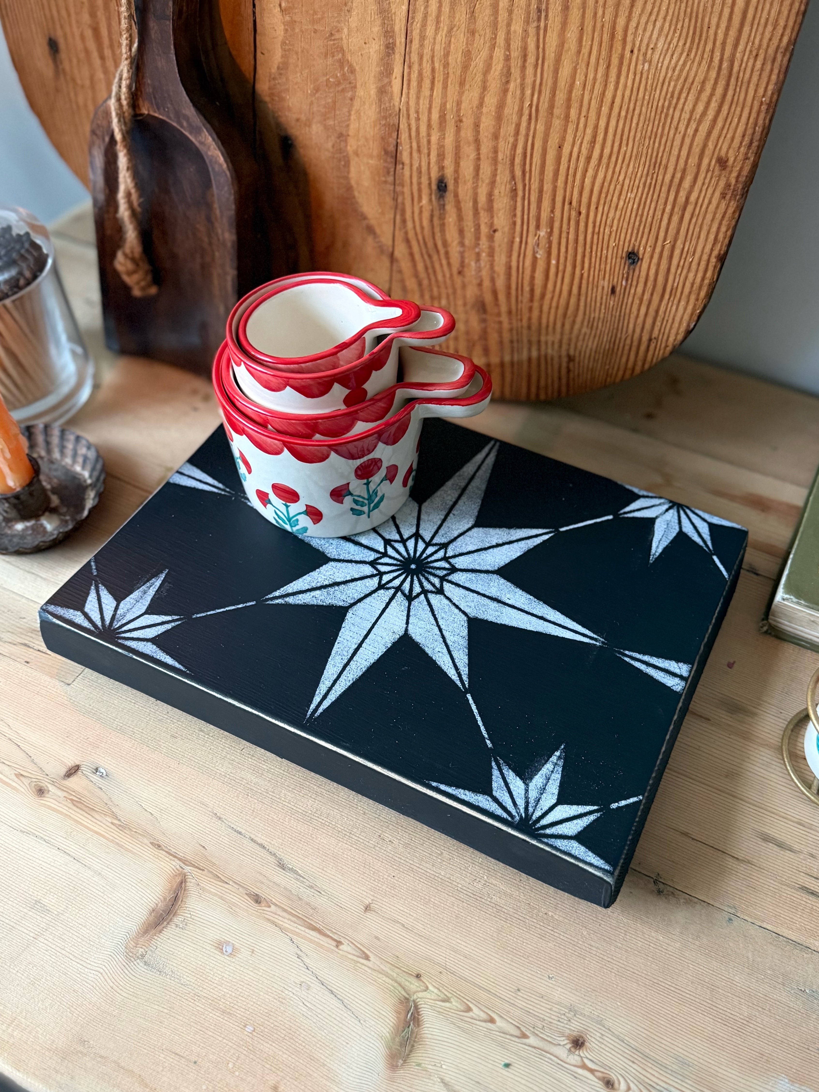 Bring a touch of rustic art to your home with this handmade wooden stand. Crafted from rustic, salvaged wood, this item celebrates character and imperfection, making each piece unique. It is finished to be durable, sealed with a water repellent varnish and practical for various uses: a kitchen stand for hot dishes, a stylish plant riser, or a decorative accent piece. A wonderful, handmade item for lovers of rustic, farmhouse, or Scandinavian-inspired decor.